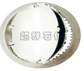 由反拱形金屬膜片和鋸齒壓桿構(gòu)成的組合式爆破片,凹面接觸介質(zhì)。爆破時(shí),鋸齒壓桿失穩(wěn)使組合膜片翻轉(zhuǎn)被鋸齒沿周邊處剪開,泄放壓力,從而起到保護(hù)作用。